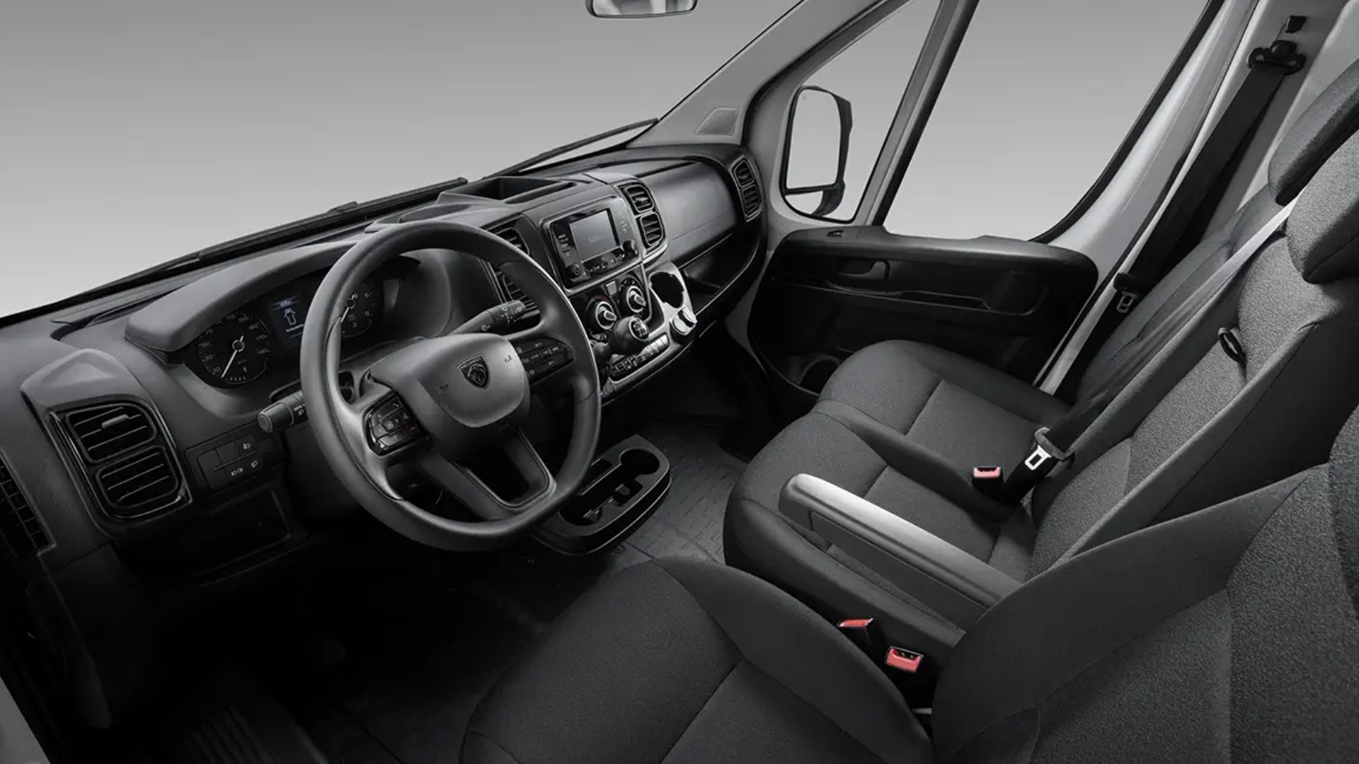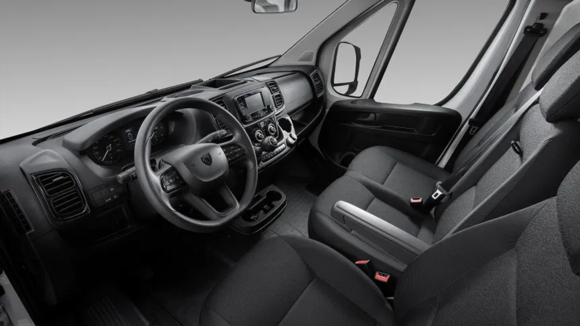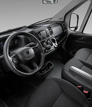 Mais conectividade no dia a dia! A nova multimídia traz tela de 5” para as versões Cargo e 7” para as versões Minibus, oferecendo navegação intuitiva, acesso fácil a informações do veículo e comandos rápidos para você manter o foco na estrada.